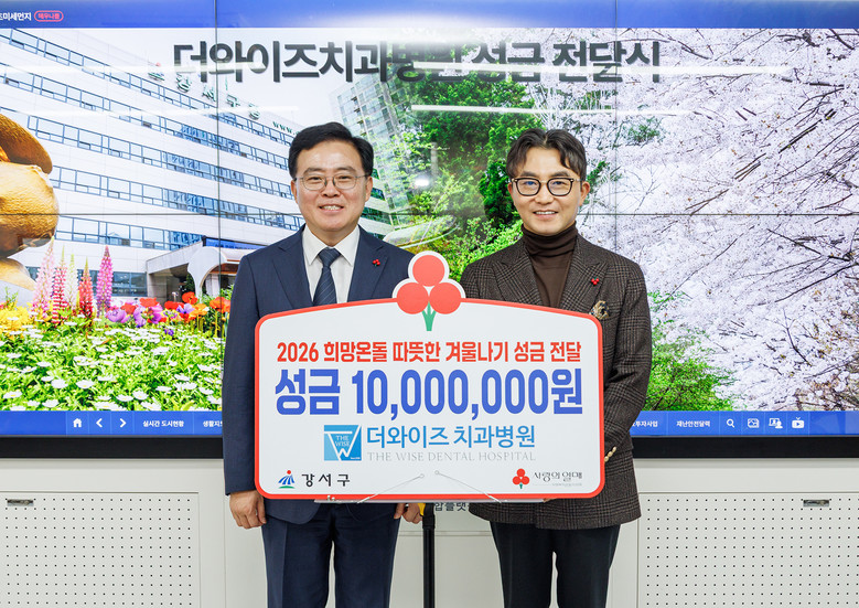 [강서구 세계타임즈=이장성 기자] 서울 강서구(구청장 진교훈)는 16일(금) 화곡동 더와이즈치과병원(대표원장 임세웅)으로부터 이웃돕기 성금 1천만 원을 전달받았다.