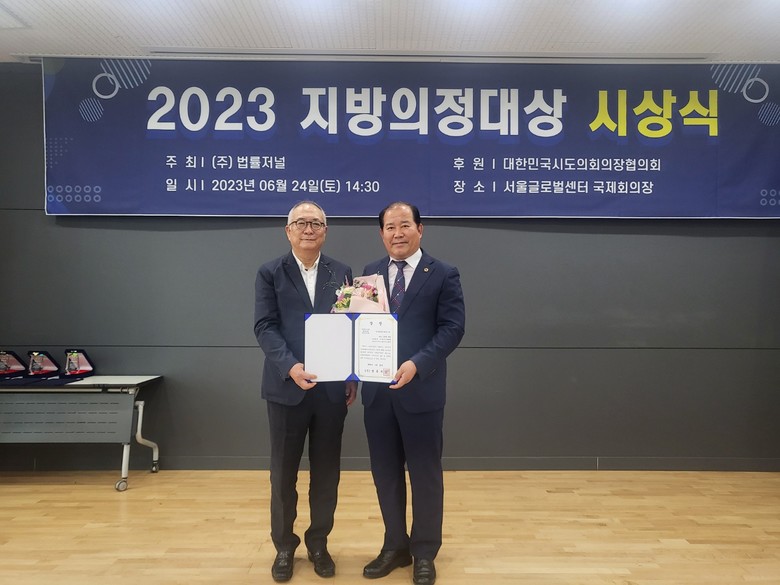 [경남 세계타임즈=최성룡 기자] 경상남도의회 의원연구단체 경남관광산업연구회(회장 조영명)가 2023 지방의정대상(정책연구부문 최우수상)에 선정되어 6월 24일 서울글로벌센터 국제회의장에서 시상식을 가졌다.