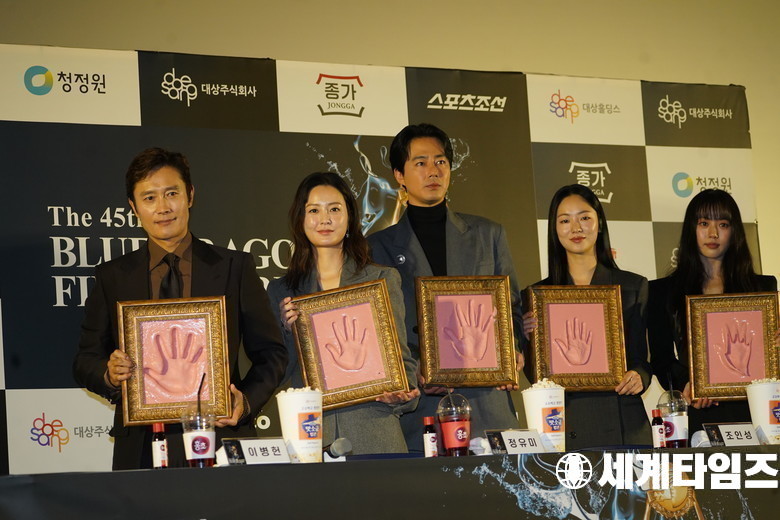 6일 서울 여의도 CGV에서 진행된 제45회 청룡영화상 핸드프린팅 행사에 참석한 제44회 청룡영화상 수상자 이병헌, 정유미, 조인성, 전여빈, 고민시가 참석해 핸드프린남겼다.세계타임즈 / 신상철 기자 news@thesegye.com