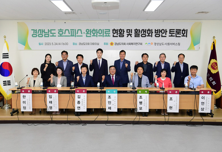 이어 연구회 회장 조인제 의원이 좌장을 맡은 가운데, 조현 인제대학교 보건행정학과 교수, 김종연 영남대학교병원 의료원장, 이언상 경남연구원 사회문화연구실장, 임채영 경남사회서비스원 수석연구위원, 한미정 마산의료원 호스피스병동 수간호사가 토론을 이어나갔다.