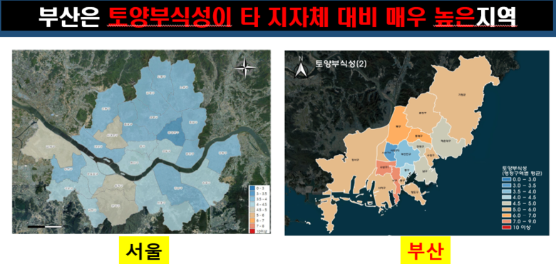 ◈ 해안 특성상 부산은 토양염도 매우 높아 부식우려지역은 관종 개선해야