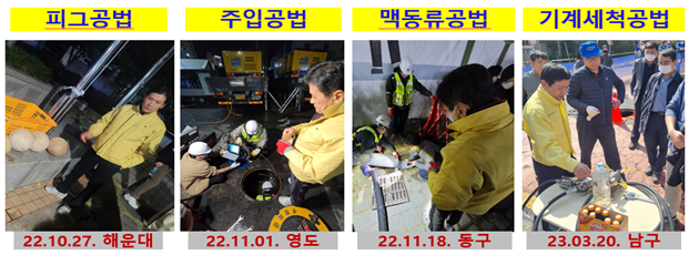 상수도사업본부는 적정공법 선정을 위해 2020년 12월부터 2021년 12월까지 약 4억 3천만원 규모의 「세척 타당성 및 기본계획 수립용역」을 시행하고, 이듬해 전국 세척 사업자가 참여하는 기술설명회 및 현장 시연을 추진해 선정된 맥동류, 주입, 피깅 공법으로 지난해 20여개 소블록 대상 시범사업까지 추진했지만 실제 세척 전·후 세척률은 여전히 정량화하기 어려운 실정이다.