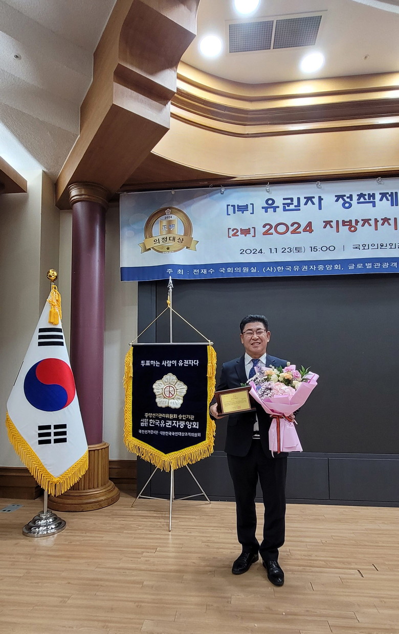 [충남 세계타임즈=백택기 기자] 23일 국회의원회관에서 열린 ‘2024 지방자치 의정대상’에서 충남도의회 오인철 부의장(천안7, 더불어민주당)이 의정대상을 수상했다.