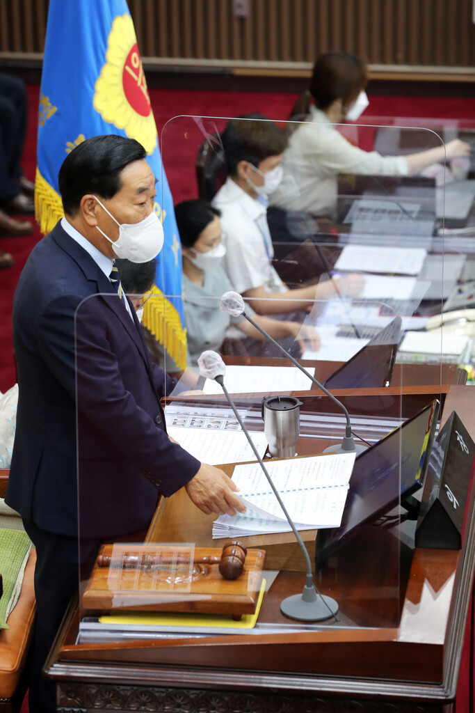 박문희 의장은 개회사를 통해 “11대 후반기 의회 1년간 우리 도의회는 코로나19와 과수 화상병, 수해 등 전례 없는 어려움속에서 민생안정을 위해 최선을 다해왔다”라며 “앞으로도 도의회는 1년여 남은 임기동안 집행기관에 대한 감시와 견제라는 의회의 책무를 다하며, 소통과 협치로 코로나 19 종식과 민생안정을 최우선 과제로 삼아 의정활동에 매진할 것이다”라고 밝혔다. 특히 “이번 회기에는 도와 교육청 2021년도 상반기 주요업무 추진상황을 보고 받게 되는데, 의원님들은 당초 계획에 맞게 사업이 추진됐는지 세심한 점검이 필요하고, 집행기관에서는 그동안 추진한 사업들을 다시 한번 점검하여 보완.발전 시키는 계기가 될 것이다”라고 말했다.
