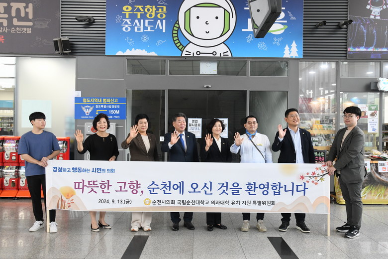 서선란 의대특위 위원장은 “이번 행사는 귀성객 환영과 함께 의과대학 신설에 대한 의지를 새롭게 다지는 시간이었다”며, “순천시의회는 지금까지 해왔던 것처럼 앞으로도 순천시민의 생명권 수호를 위해 순천대 의대 유치에 최선을 다하겠다”고 전했다.