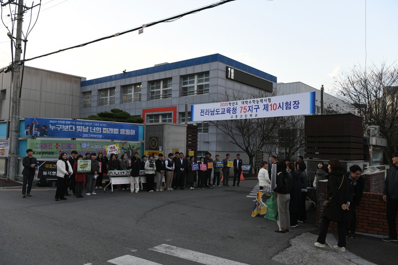 한편, 이번 고흥고등학교에서 치러지는 2025학년도 대학수학능력시험엔 고흥고등학교 110명, 녹동고등학교 76명, 고흥산업과학고 4명 등 총 218명의 학생이 시험에 응시했다.