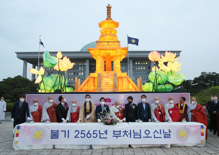 [세계타임즈 이영진 기자]박병석 국회의장은 29일 오후 국회 중앙 잔디광장에서 열린 불기 2565년 국회 봉축탑 점등식에 참석했다.