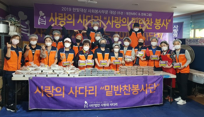 사랑의 사다리 밴드 밑반찬 봉사는 회원들의 후원금으로 메주 금요일 오전 9시에 동구-대덕구-서구-유성구-중구 순으로 각 구별로 소외계층 30가정에 3종류의 밑반찬 봉사를 하고 있다.