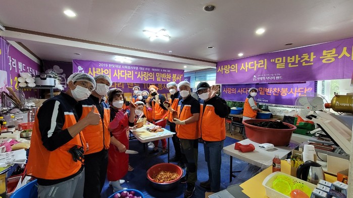 이날 봉사에는 유희자 나눔봉사단장을 비롯해서 회원 15명이 청태무침, 양파초절임, 무우짱아치 등 3가지 밑반찬을 만든 후 부자 및 조손 10가정, 장애인 10가정, 독거노인 10가정에 직접 배달을 하였다.