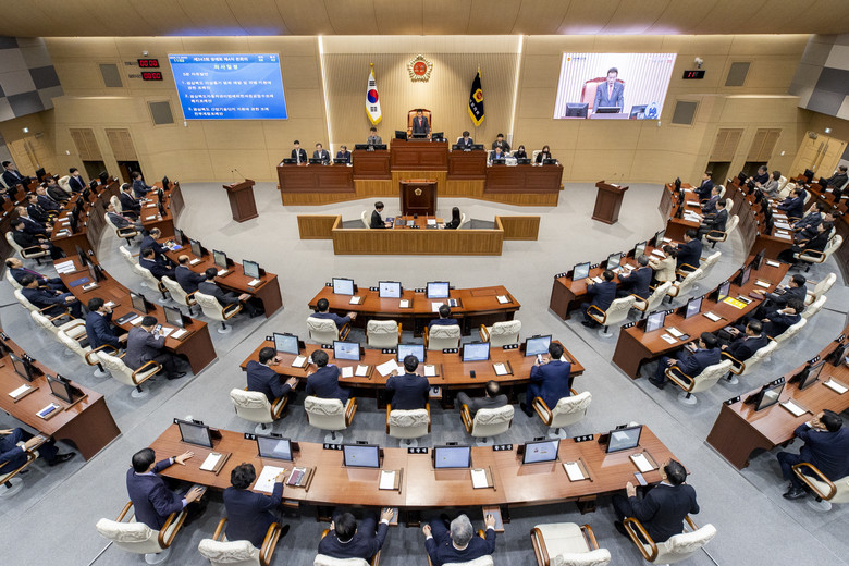 배한철 의장은 개회사를 통해 “국민권익위원회 주관 2023년 지방의회 청렴도 평가에서 경북도의회가 광역의회 중 유일하게 1등급을 달성했다”며, 동료의원과 공직자들에게 축하와 감사의 인사를 전했다.