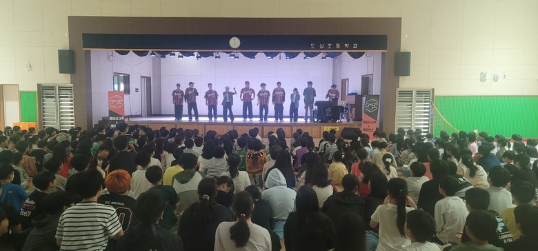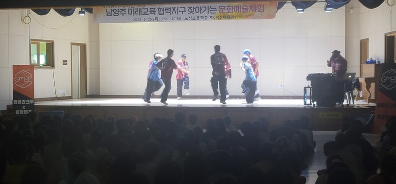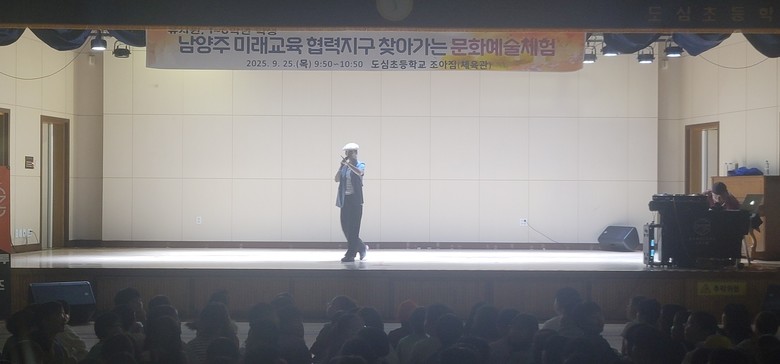 [남양주시 세계타임즈=송민수 기자] 도심초등학교(교장 이수미)는 2025년 9월 25일(목), 구리남양주교육지원청의 '찾아가는 마을연계 체험학습' 프로그램의 지원을 받아 본교 조아짐(체육관)에서 전교생을 대상으로 댄스·비트박스 공연을 실시하였다.