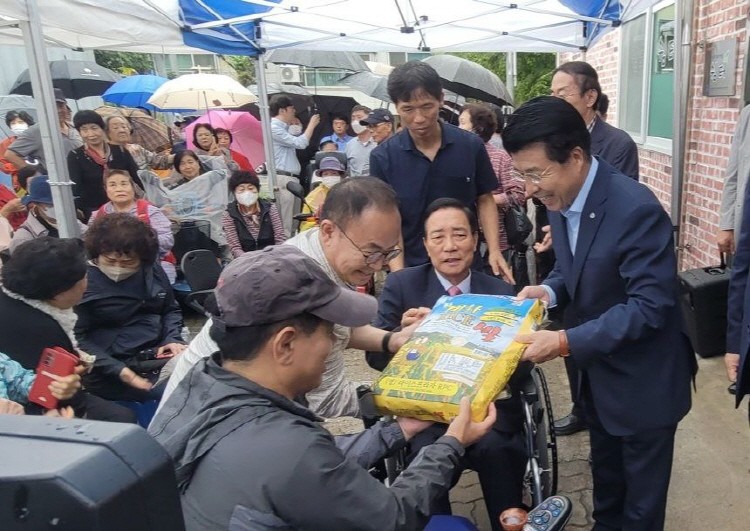 서강석 송파구청장, 신영재 송파구의원도 행사에 함께해 쌀을 전달하고 재단에게 격려를 아끼지 않았다.
