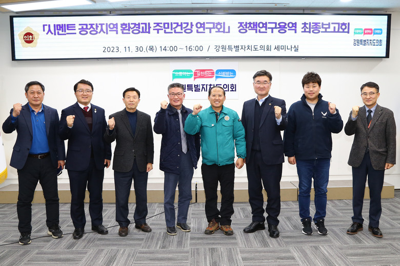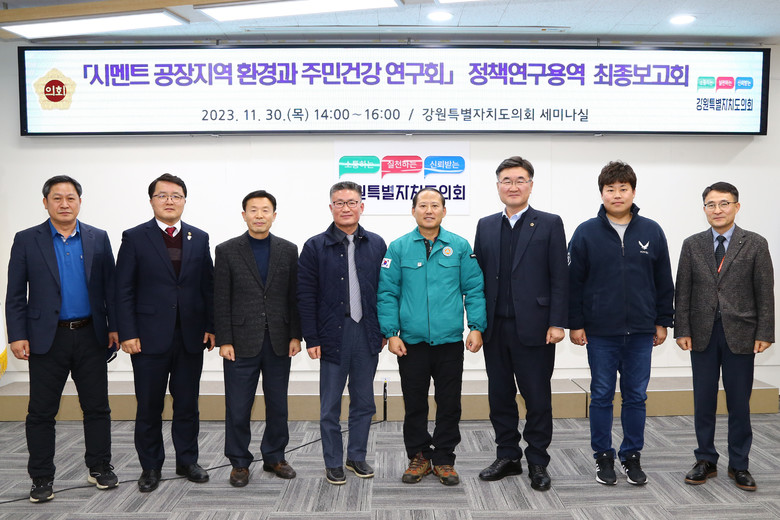 [강원도 세계타임즈=김민석 기자] 강원특별자치도의회 의원정책연구 모임인 「시멘트 공장지역환경과 주민건강 연구회」는 11월 30일(목) 강원특별자치도의회 세미나실에서 ‘시멘트 공장지역 환경과 주민건강 연구회 용역’ 최종보고회를 개최했다고 밝혔다.