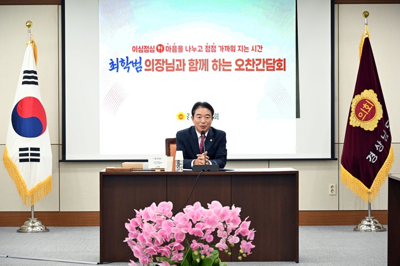 [경남 세계타임즈=최성룡 기자] 최학범(국민의힘, 김해1) 경상남도의회 의장은 30일 도의회 2층 의정회의실에서 의회사무처 5급 직원 20명과 함께 자유롭게 소통하는 도시락 오찬 간담회를 개최하였다.