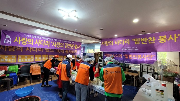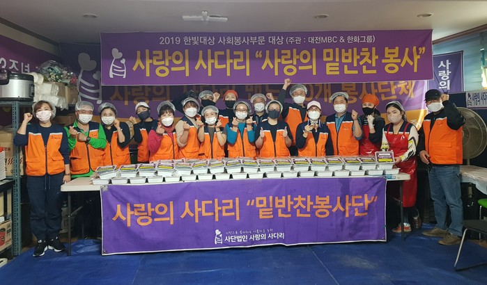 사랑의 사다리 밴드 밑반찬 봉사는 회원들의 후원금으로 매주 금요일 오전 9시에 동구-대덕구-서구-유성구-중구 순으로 각 구별로 소외계층 30가정에 3종류의 밑반찬 봉사를 하고 있다.