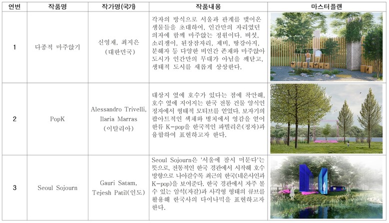 이번 공모에는 총 13개국의 작가들이 참여했으며, 서울이라는 도시가 만들어내는 문화적 흐름과 일상, K-컬처의 확장성을 각기 다른 시선으로 정원이라는 공간에 풀어낸 것이 특징이다.