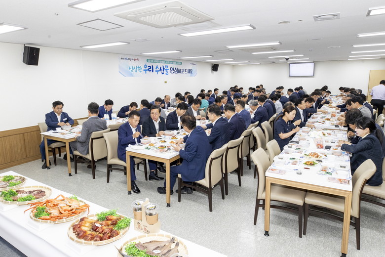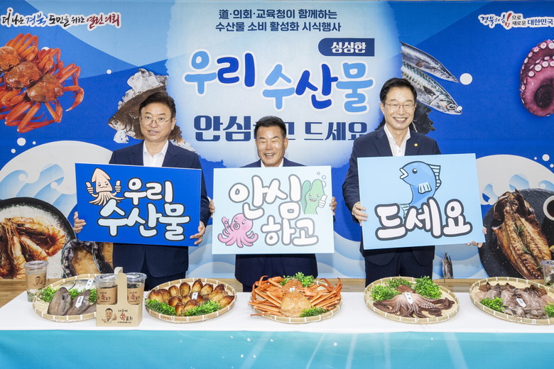 [경북 세계타임즈=한성국 기자] 경상북도의회(의장 배한철)와 경상북도(도지사 이철우)는 9월 12일 제341회 임시회 본회의 종료 후 의원식당에서 도의회·도청·교육청이 함께하는 수산물 소비 활성화 시식회 행사를 열었다.