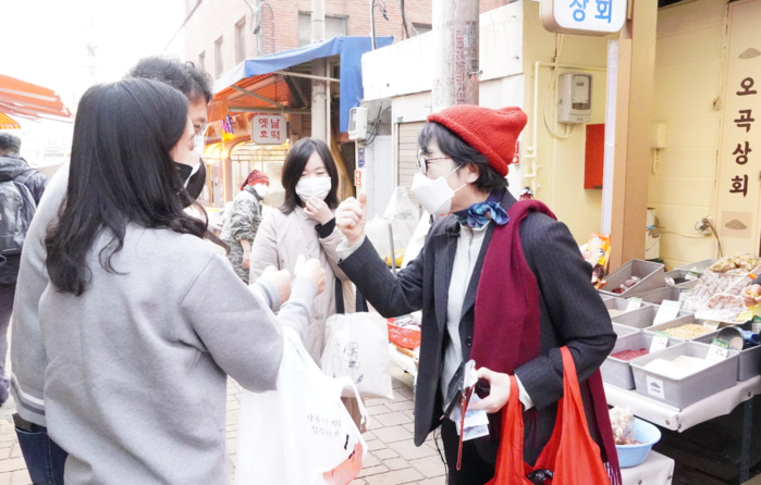 [세계타임즈 심귀영 기자]서울 강남구 논현동에 위치한 영동전통시장을 방문한 김 후보는 온누리상품권으로 식재료를 구입하는 한편, 방역 상황을 살피고 코로나바이러스 감염증의 장기화로 어려움을 겪고 있는 송인순 상인회장을 비롯한 상인들의 애로사항을 들었다.