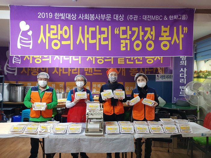이날 봉사에는 유희자 단장, 한철웅 단장, 송혜숙 부단장, 이지유 홍보부장 등 4명이 대덕구 중리동에 위치한 사랑의 사다리 밴드 사무실에서 직접 닭강정 41개를 만들어서 전달을 하였다.