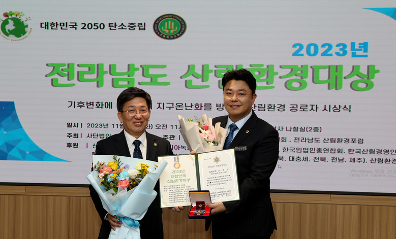 [전남 세계타임즈=우덕현 기자] 전라남도의회 김호진 의원(더불어민주당·나주 1)이 11월 14일 (사)산림환경포럼이 주관한 「제3회 전라남도 산림환경대상」에서 입법부문 대상을 수상했다.