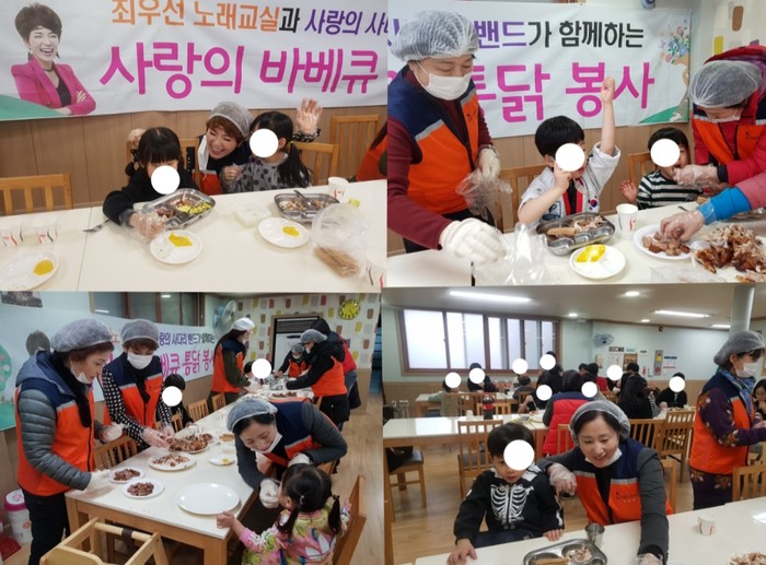 이날 봉사비용을 후원한 최우선 노래교실 강사는 “오늘 사랑의 사다리 밴드와 함께 통닭봉사를 하면서 정말 맛있게 먹는 아이들과 행복한 시간을 보내서 기쁘다.“고 말했다.