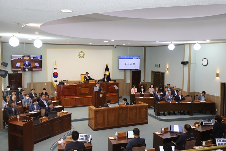 곽세훈 의장은 개회사에서 “이번 회기 동안 의회와 집행부의 협력으로 생산적인 회기가 되기를 바란다”며 “군민의 화합과 통합을 위한 축제와 행사 개최준비로 고생하신 집행부 공무원 여러분의 노고에 감사를 드리며, 바쁜 영농기에 적기 영농이 될 수 있도록 일손 부족 농가에 대한 대책 수립”을 집행부에 당부했다.