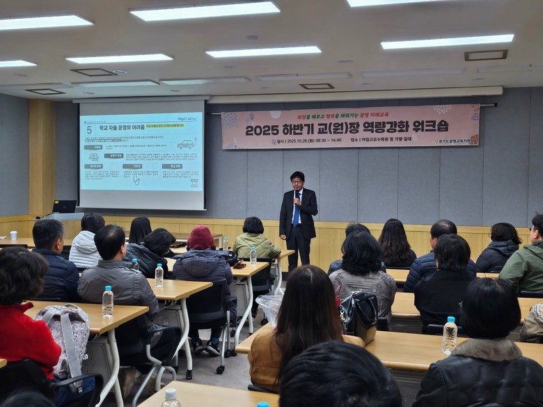 [광명시 세계타임즈=송민수 기자] 경기도광명교육지원청(교육장 김명순)은 10월 28일(화), 아침고요수목원 세미나실에서 2025 경기미래교육 구현을 위한 ‘학교자율운영 및 경기미래장학 실현을 위한 교(원)장 역량강화 워크숍’을 운영하였다. 이번 워크숍에서는 학교와 교육지원청, 도교육청 간의 협력을 강화하고, 학교 중심의 교육정책, 미래장학, 교육과정운영의 선순환 체제를 통해 학교 자율 운영의 동력을 확보하고자 하였다.