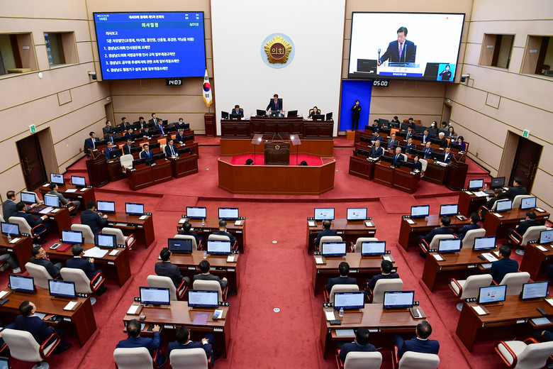 이어, ‘경상남도의회 인사청문회 조례안’ 등 조례안 23건, ‘경상남도의회 지방공무원 인사규칙 일부개정규칙안’ 1건, ‘농업기술원 등 이전사업 공사분야 사무의 공공기관 위탁 동의안’ 등 동의안 3건, ‘교통약자의 이동편의증진법 개정 촉구 건의안’ 1건, ‘2024년도 경상남도 예산안 및 2024년도 경상남도교육비특별회계 예산안’ 2건 등 총 30건의 안건을 처리하였다.