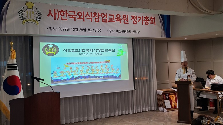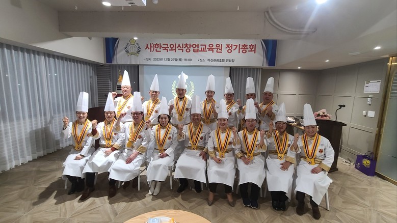 [세계타임즈]최성룡기자 = (사) 한국외식창업교육원(이사장 안형상) 정기총회 가 2022년 12월 29일 (목) 오후 7시 마산관광호텔 2층 연회장에서 50여 명의 명인들과 내빈들이 참석한 가운데 가졌다.
