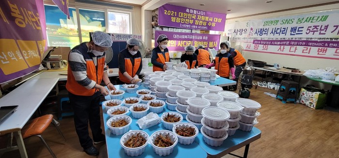 이날 봉사에는 유희자 단장을 비롯한 자원봉사자 10명이 대덕구 중리동에 위치한 사랑의 사다리 밴드 사무실에서 고추장볶음, 고추장무침을 만들어서 배달을 하였다.