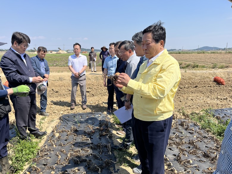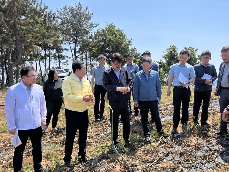 [전남 세계타임즈=우덕현 기자] 전남도의회 정길수 의원(더불어민주당, 무안1)은 지난 6월 3일 권재한 농림축산식품부 농업혁신정책실장, 정광현 전남도 농축산식품국장 등을 비롯한 관계자와 무안군 해제면 일원 양파 생육불량 피해 상황을 점검하고 대응방안을 논의하였다.