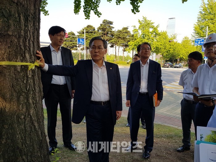 그리고 현장을 찾아 나무의 상태와 설계도면을 직접 확인하며 “건축법 소방법 등에 문제만 없다면 사람이 다소 돌아다니더라도 나무를 살려야 한다”는 취지로 시공업체 관계자와 담당 공무원들에게 대안을 요청했다.