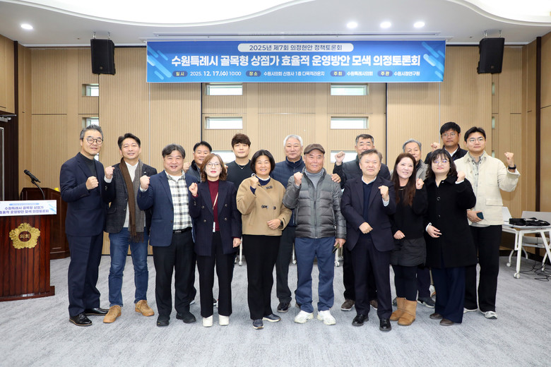 또한 장 의원은 “오늘 토론회는 상권별 특성과 현장의 목소리를 반영한 맞춤형 육성 전략을 함께 고민하는 자리”라며, “수원시의회와 수원시가 함께 골목형 상점가가 자생력과 경쟁력을 갖춘 지역 상권으로 성장할 수 있도록 정책적 지원과 협력을 이어가겠다”고 밝혔다.