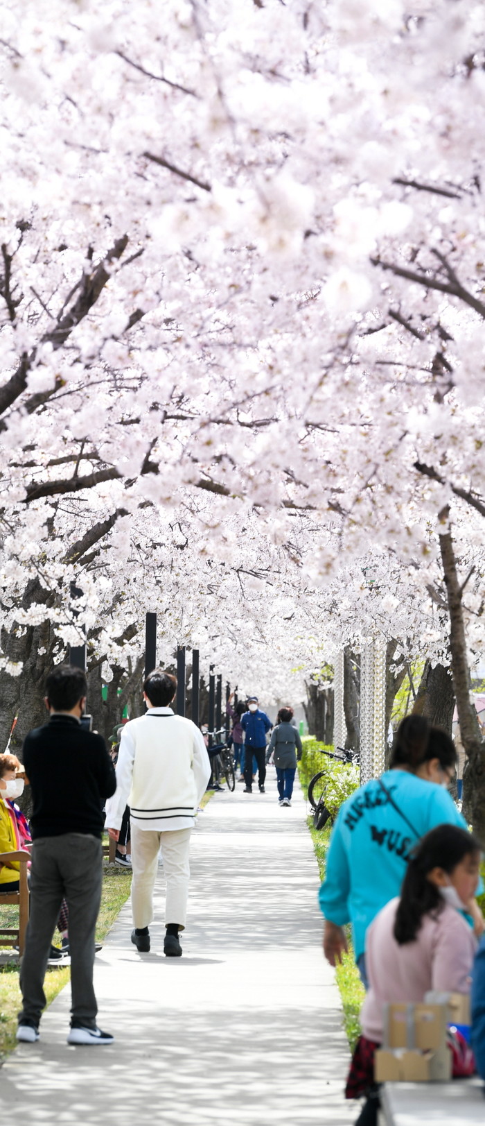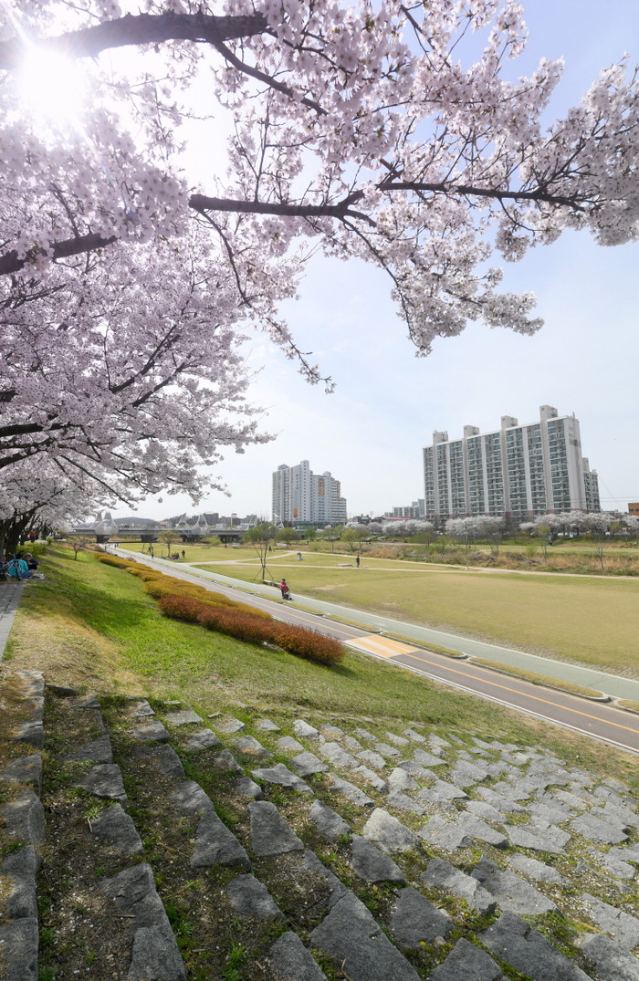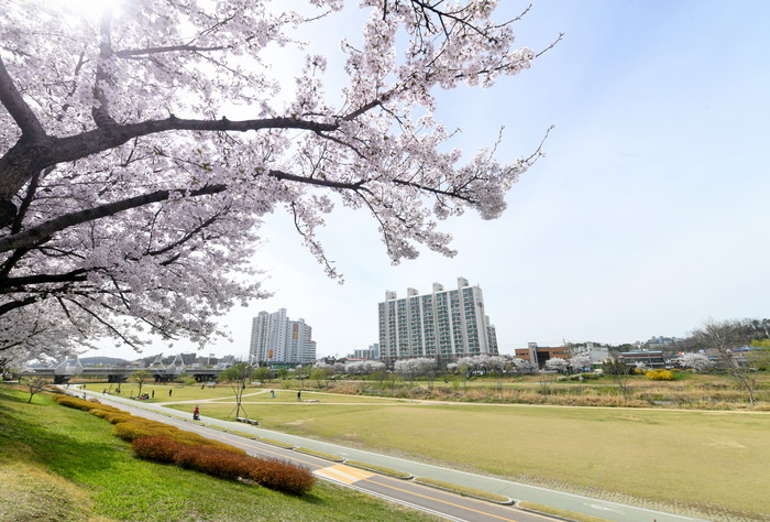 [오산시=세계타임즈 이영진 기자] 완연한 봄 날씨를 보이는 2일 오산천에 흐드러지게 핀 벚꽃이 만개했다.