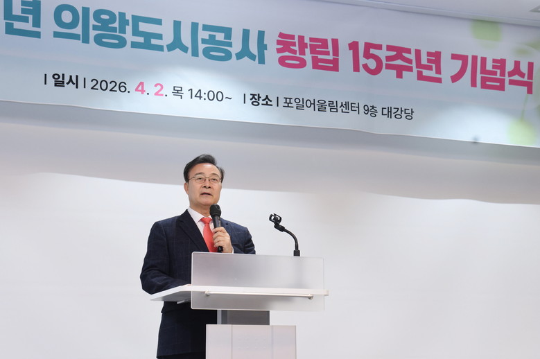 [의왕시 세계타임즈=송민수 기자] 의왕도시공사(사장 노성화)가 창립 15주년(4월 5일)을 앞둔 지난 4월 2일, 포일어울림센터 대강당에서 소속 임직원들이 참석한 가운데 ‘창립 15주년 기념식’을 개최했다.