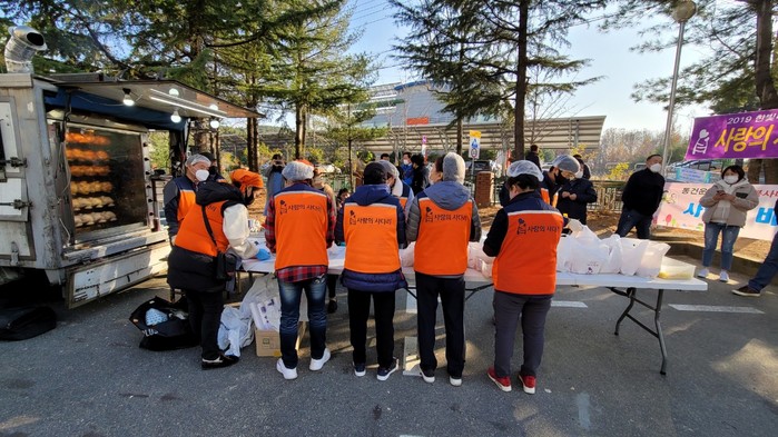 [대전=세계타임즈 이채봉 기자] 9천명 SNS 대전시 봉사단체 사랑의 사다리 밴드(리더 이정제)는 25일 오후3시, 대덕구 목상동 6곳 경로당에 ㈜동건운수(대표 이선엽)의 후원으로 바비큐 통닭 150마리 봉사로 사회적 효행을 실천 하였다.