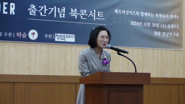 [세계타임즈]최성룡기자 = 2024 창원시 양성 평등기금 사업의 일환으로 진행된 도서 출간 및 출간기념북콘서트가 비영리단체 따숨의 주관으로 10월의 마지막 밤 경남연구소 1층홀에서 신혜영 작가의 사회로 개최됐다.