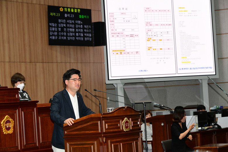 심철의 의원은 “2021년 2부리그 강등, 피나는 노력 끝에 2022년 1부 리그로 복귀한 광주FC의 영광의 히스토리와 어두운 이면에 대해 이야기해 보고자 한다”며 자유 발언을 시작했다.