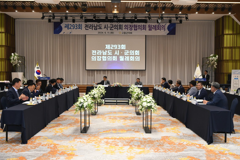 [고흥군 세계타임즈=우덕현 기자] 고흥군의회(의장 이재학)는 11일 화요일 고흥 썬밸리 리조트에서 제293회 전남 시·군의회 의장협의회(협의회장 강필구) 월례회의를 개최했다.