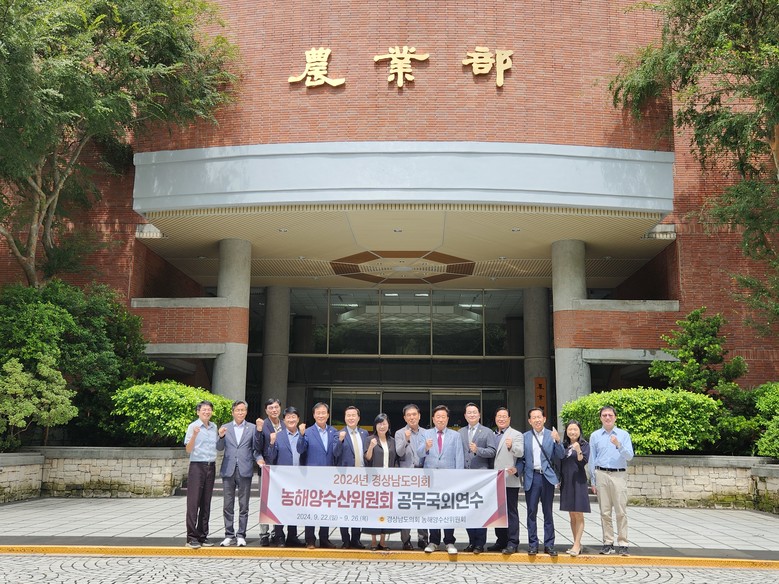 [경남 세계타임즈=최성룡 기자] 경상남도의회 농해양수산위원회(위원장 백수명)는 도 농수산물의 아시아 시장 수출판로 모색과 국외 모범사례 연구를 위해 9월 22일부터 26일까지 4박 5일간에 걸쳐 대만을 방문하였다.