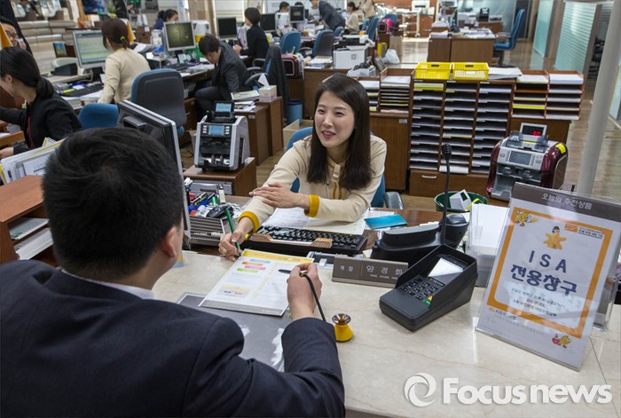 (서울=포커스뉴스) 개인종합자산관리계좌(ISA) 시판이 시작된 14일 오후 서울 여의도 국민은행 본점에서 한 시민이 상담을 받고 있다. ISA란 실질적 재산형성을 지원하는 세제혜택 상품으로 가입자가 신탁계좌를 이용하여 다양한 금융상품(예금, ETF, ELS, 펀드 등)을 선택하여 포트폴리오를 구성하고 운용 관리하는 계좌이다.