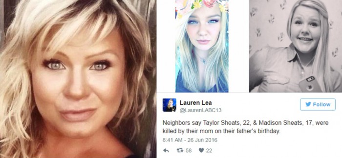 휴스턴 크로니클,CNN을 비롯한 미국 복수의 매체는 27일(현지시간) "미국 휴스턴의 폴스히어에 사는 크리스티 시츠(여·42)가 24일 오후 5시께 그의 두 딸 테일러 시츠(22)와 매디슨 시츠(17)를 총기로 살해했다"고 보도했다.