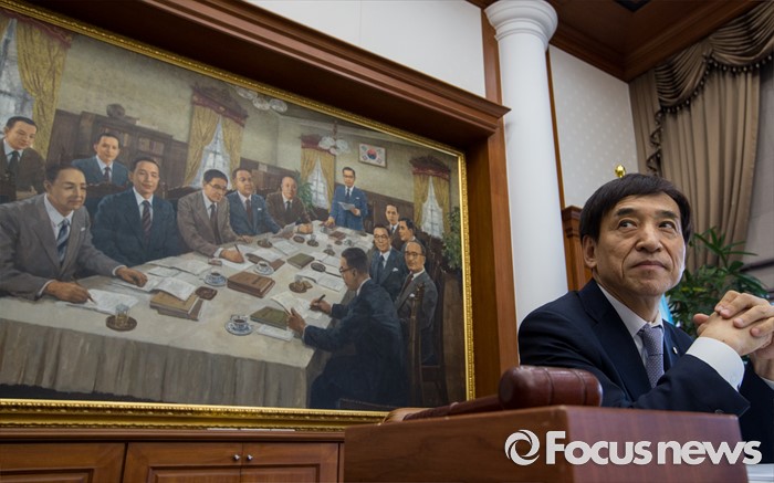 (서울=포커스뉴스) 14일 오전 서울 중구 한국은행에서 열린 제14차 금융통화위원회의에 참석한 이주열 한국은행 총재가 생각에 잠겨 있다.