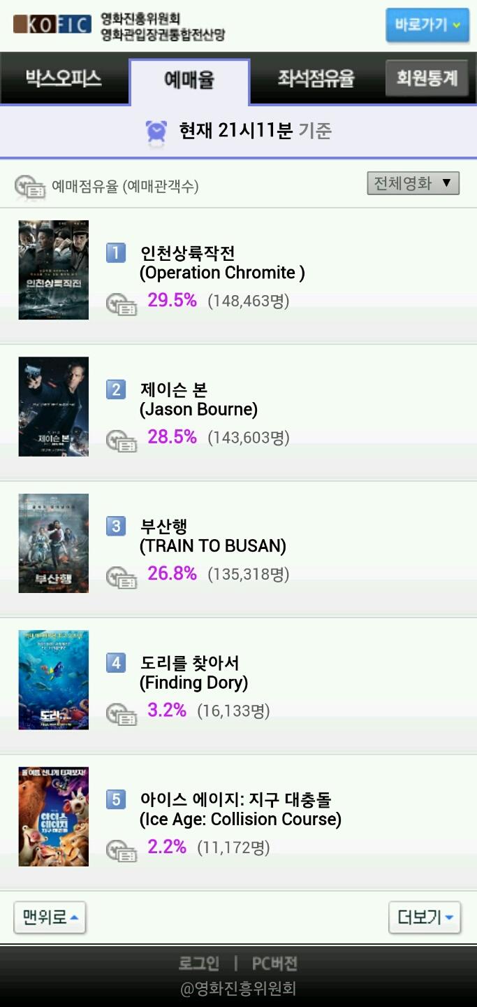 이는 같은 날 개봉하는 '제이슨 본'과 현재 박스오피스 왕좌를 차지하고 있는 '부산행'을 앞지른 것이라 향후 대결의 결과가 주목된다.