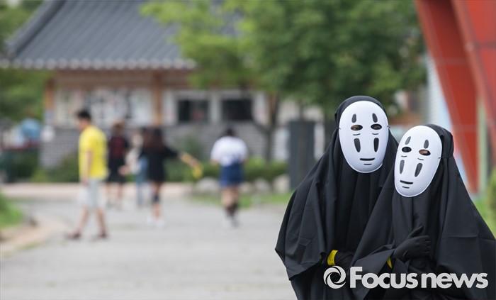 (부천=포커스뉴스) 27일 오후 경기도 부천시 한국만화박물관에서 열린 '제19회 부천국제만화축제'에 참여한 코스어들이 이동하고 있다.