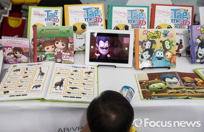 (부천=포커스뉴스) 27일 오후 경기도 부천시 한국만화박물관에서 열린 '제19회 부천국제만화축제'에 참여한 한 어린이가 영어교재들을 바라보고 있다.