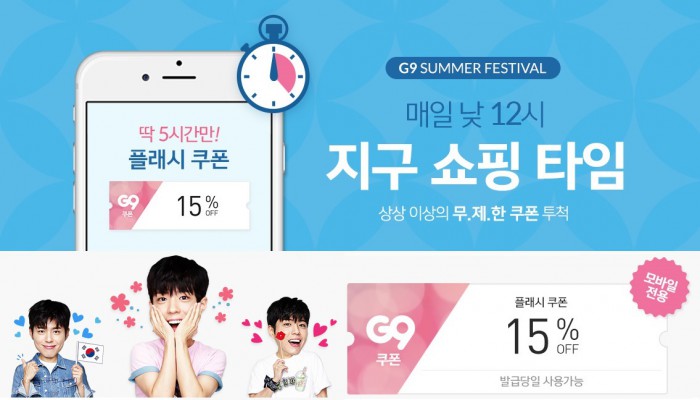(서울=포커스뉴스) G9(지구)가 오는 11일까지 매일 낮 12시부터 오후 5시까지 깜짝 할인쿠폰을 증정하는 '플래시 쿠폰' 프로모션을 연다.