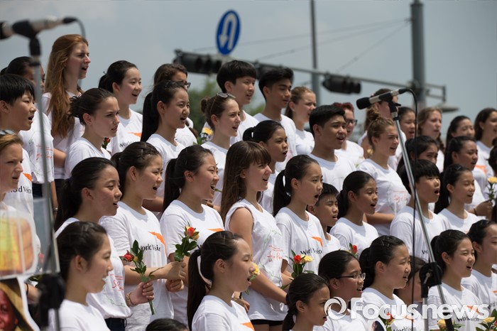 (서울=포커스뉴스) 8일 오전 서울 종로구 광화문광장에서 열린 '월드비전 2016세계어린이합창제' 런치콘서트에서 헝가리, 필리핀 어린이 합창단과 한국 월드비전 합창단이 노래를 부르고 있다. 올해로 6회를 맞은 '월드비전 2016 세계어린이합창제'는 'Song of Peace-평화의 노래'라는 주제로 8월 6일부터 11일까지 예술의 전당에서 열린다.