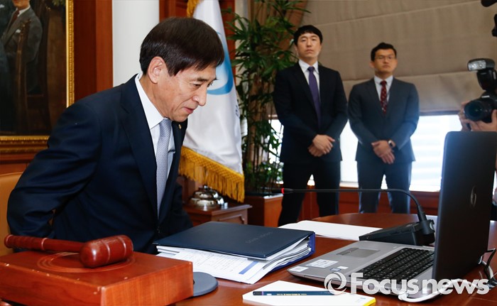 (서울=포커스뉴스) 11일 오전 서울 중구 한국은행에서 열린 제15차 금융통화위원회에 참석한 이주열 한국은행 총재가 자리에 앉고 있다.